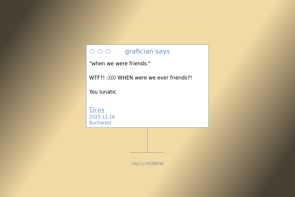 - "I keep telling the idiots to ignore and yet here we are..."palimpsest
