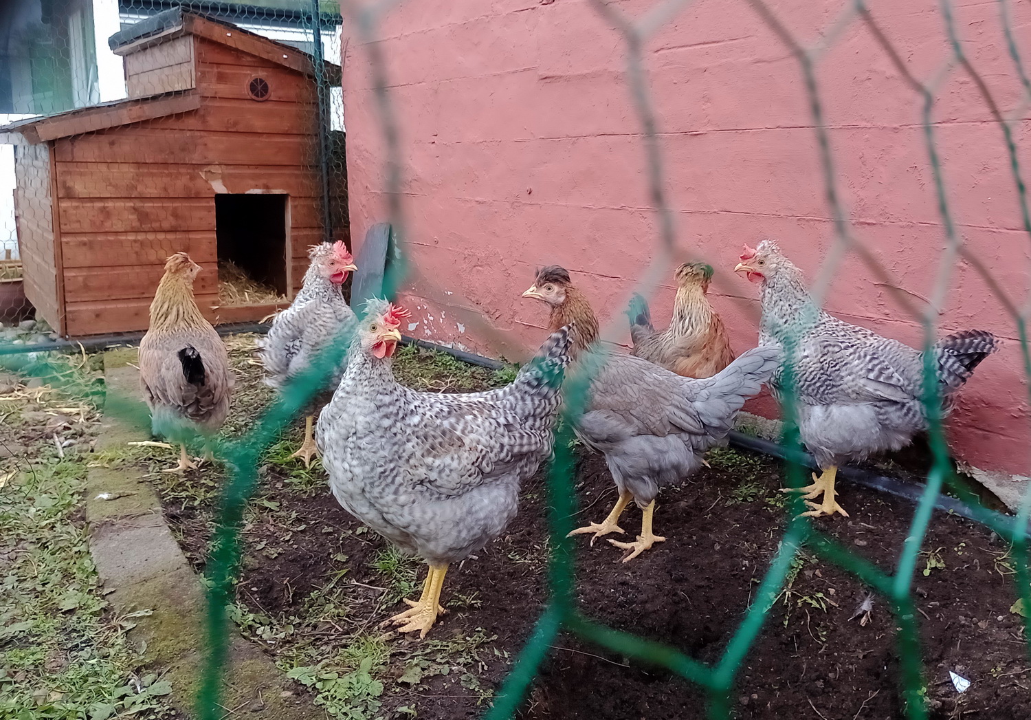 The chicks are 11 weeks old now, so they are testing the outside hutch for the first time, bless 'em.